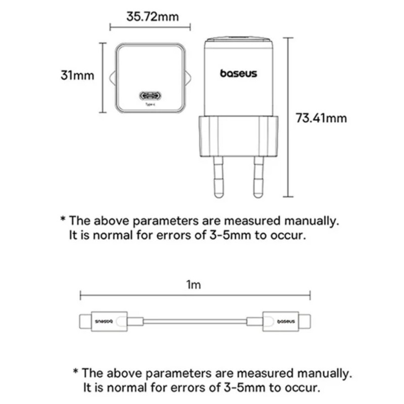یکی از جنبه های کلیدی هر شارژر ابعاد آن است. شارژر سریع Palm Baseus با اندازه جمع و جور و مینیاتوری خود جلب توجه می کند: 31 در 31 در 54 میلی متر. به دلیل اندازه آن، واحد شارژ به راحتی در یک جیب یا کیف قرار می گیرد و آن را به یک همراه ایده آل برای سفر تبدیل می کند.