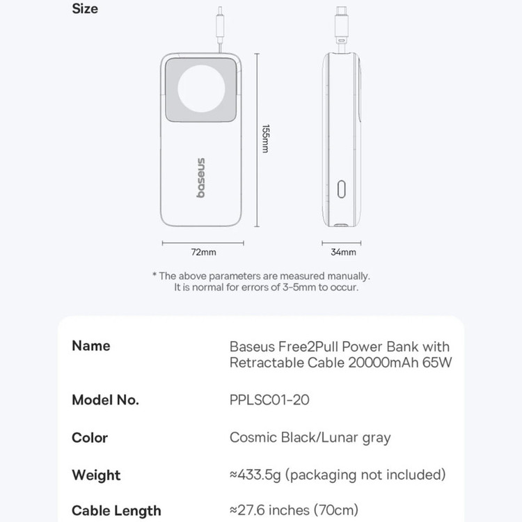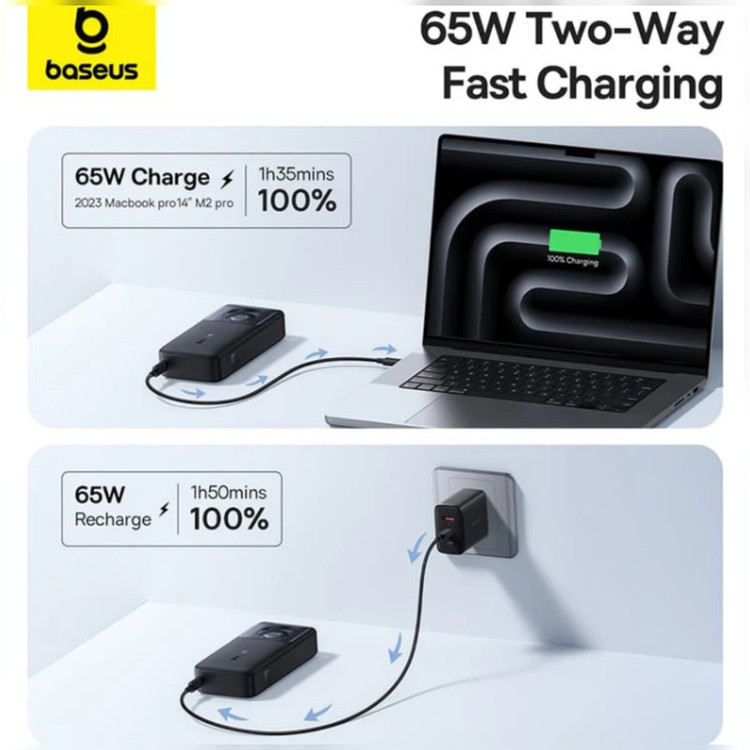پاوربانک بیسوس مدل NOMOS 65W ظرفیت 20000 میلی آمپر ساعت