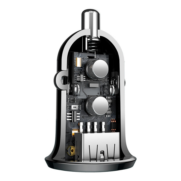اگر به دنبال یک شارژر با کیفیت، با طراحی فشرده، باریک و جمع و جور برای داخل خودرو هستید، مدل Grain Pro از سِری شارژرهای فندکی باسئوس انتخابی مناسب برای شما خواهد بود. در واقع نام این کالا بر گرفته از معنی لغوی Grain Proو به مفهوم خرد و ریز می باشد که ابعاد 24 × 24 × 40 ميلی متر دال بر کوچکی آن می باشد. این محصول دارای 2 پورت خروجی USB بوده که امکان شارژ همزمان باتری دو دستگاه مختلف را فراهم می کند. این محصول ولتاژ ورودی 12 تا 24 ولت را به ولتاژ خروجی 5 ولت برای هر 2 درگاه USB تبدیل می کند که توان نهایی آن برابر با 15 وات اندازه گیری شده است. مجموع شدت جریان خروجی در هر دو درگاه نیز برابر با 3,1 آمپر بوده که این مقدار برای ارائه انتقال انرژی با سرعت بالا به هر دستگاه مانند موبایل، تبلت، آیپد، دوربین دیجیتال، هدفون های بلوتوثی، پخش کننده های موسیقی و... مناسب می باشد.