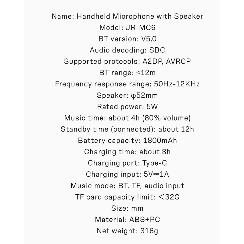 مشخصات: باتری : 1800 میلی آمپر ساعت 4 ساعت پخش موزیک 12 ساعت استند بای