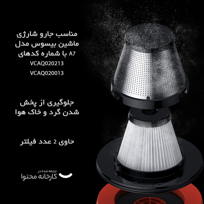 مناسب جارو شارژی ماشین بیسوس مدل A7 با کدهای VCAQ020213 و VCAQ020013 | جلوگیری از پخش شدن گرد و خاک در هوا | حاوی 2 عدد فیلتر