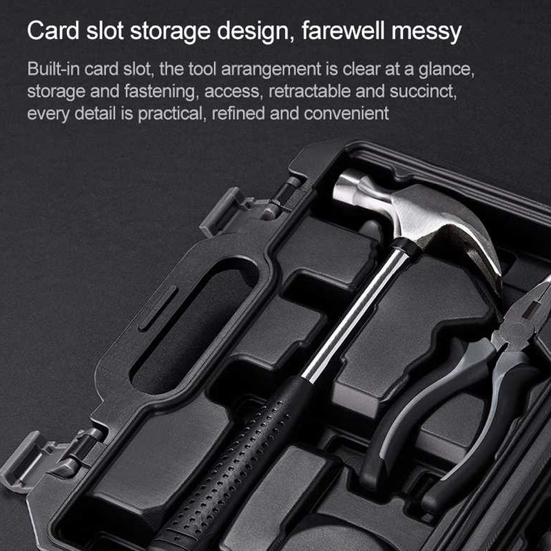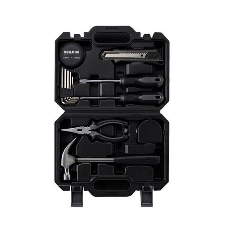 توضیحات تکمیلی مجموعه ابزار: در داخل باکس مجموعه 12 عددی ابزار مدل JIUXUN ، یک چکش، یک پیچ گوشتی، یک دم باریک، یک متر اندازه گیری با طول 3 متر، یک کاتر، 5 عدد آچار آلن، یک پیچ گوشتی دو سو و یک چسب برق قرار دارد که در شرایط مختلف می توانید از آن ها استفاده کنید.