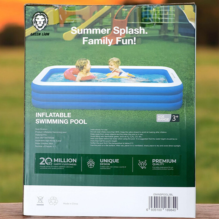 جنس PVC مقاوم | طراحی زیبا و ایمن | قابلیت نصب سریع و آسان | مناسب برای استفاده خانوادگی | مناسب برای فضای باز مانند حیاط و ویلا | دیوارههای بادی تقویتشده برای امنیت بیشتر