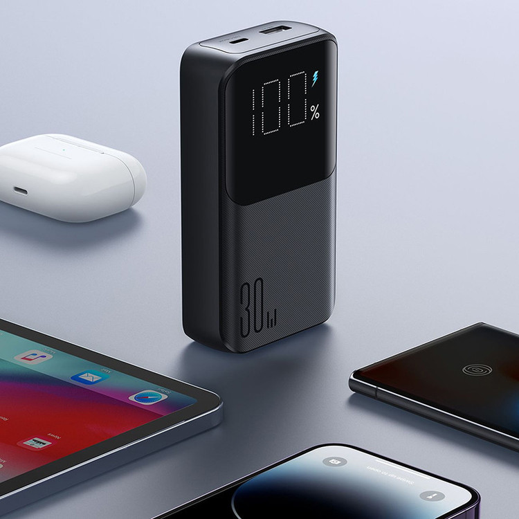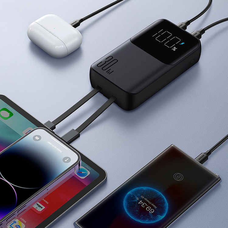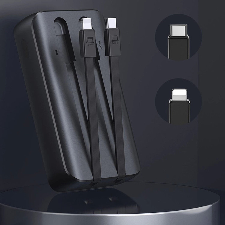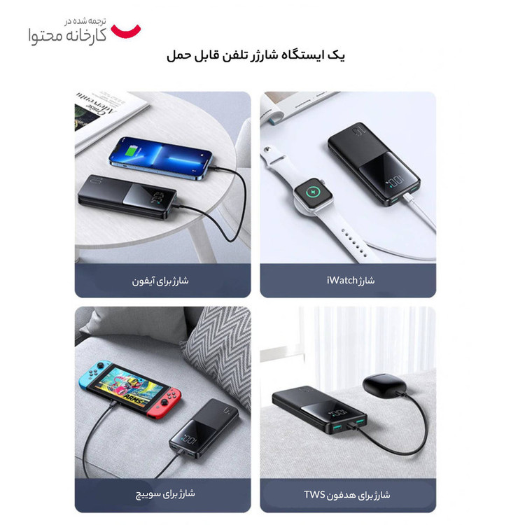 دارای کیسه پارچه ای برای نگهداری پاوربانک / کابل شارژ همراه USB به تایپ سی / شارژ با توان خروجی 30 وات / دارای 2 عدد کابل متصل به بدنه لایتنینگ و تایپ سی