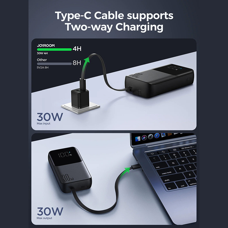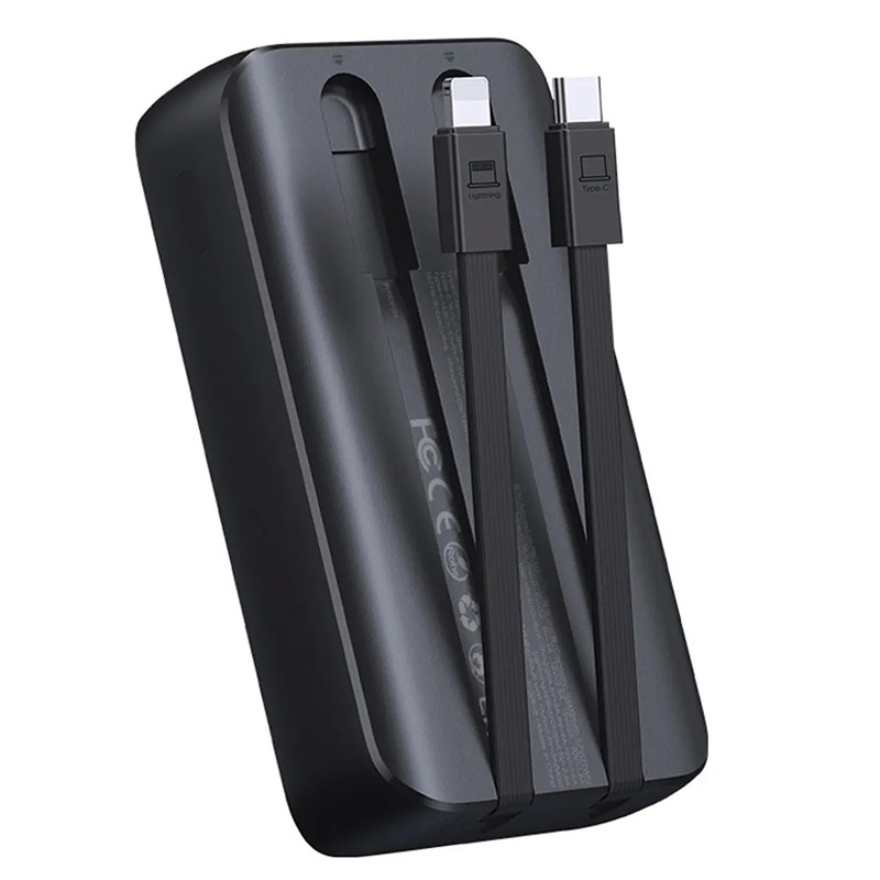 دارای کیسه پارچه ای برای نگهداری پاوربانک / کابل شارژ همراه USB به تایپ سی / شارژ با توان خروجی 30 وات / دارای 2 عدد کابل متصل به بدنه لایتنینگ و تایپ سی