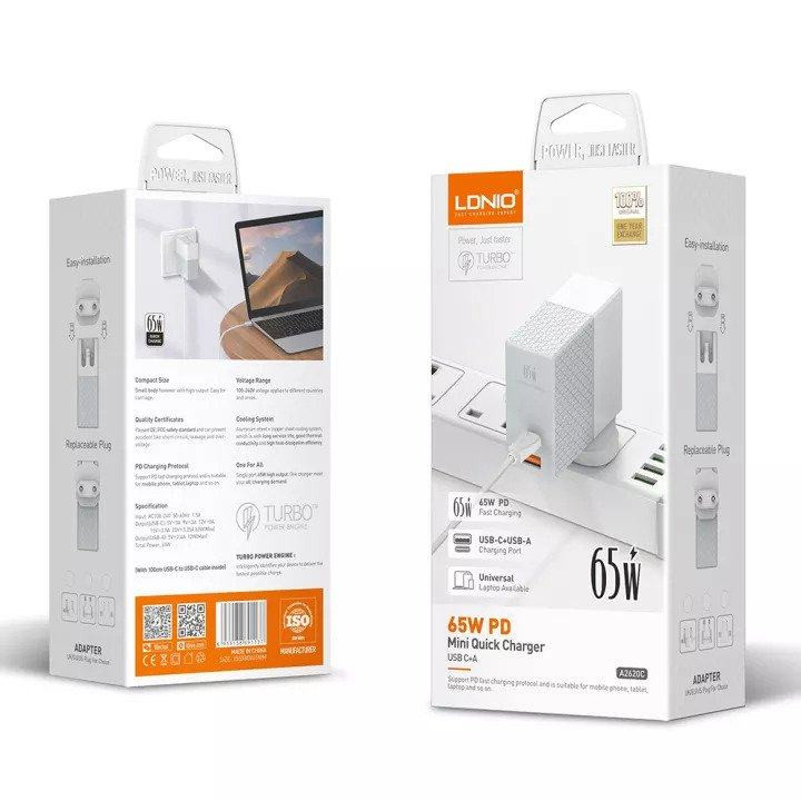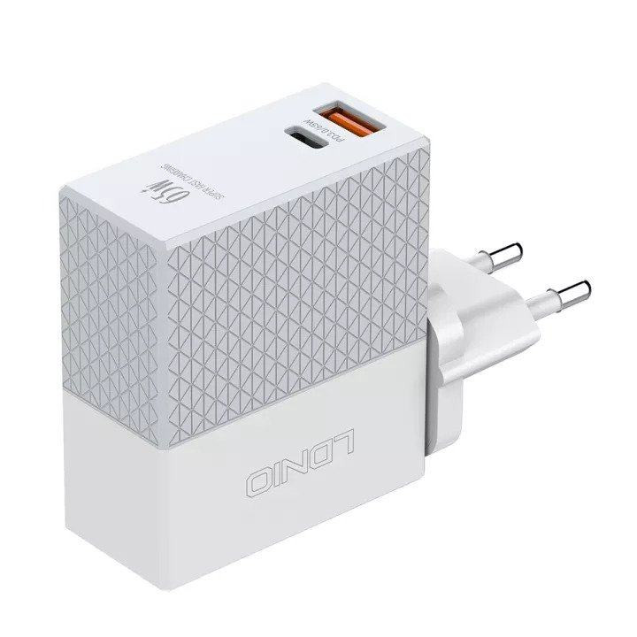 شارژر دیواری الدینیو LDNIO A2620C Fast Wall Charger با تکنولوژیهای مورد استفاده در آن بسیار کاربردی بوده و قابلیتهای خوبی را برای استفاده در اختیار شما قرار داده است تا بتوانید بدون اینکه نگران خراب شدن گوشی و وسیلههای خود باشید، از این شارژر استفاده کنید. ولتاژ ورودی شارژر دیواری الدینیو برابر با 100-240V است. روی بدنه این شارژر 2 پورت USB و Type C وجود دارد. اما خروجی و ولتاژ آنها با یکدیگر متفاوت هستند. درگاه تایپ سی دارای ولتاژ و شدت جریان خروجی برابر با: 5V~3A / 9V~3A / 12V~3A / 15V~2.5A / 20V~3.25A هستند و حداکثر توان خروجی از این پورت برابر با 65 وات است. درگاه یو اس بی نیز دارای ولتاژ و شدت جریان خروجی 5V~2.4A است و توان خروجی حداکثری آن هم برابر با 12 وات است. توجه داشته باشید که در صورت استفاده همزمان از درگاهها، حداکثر توان خروجی از شارژر دیواری الدینیو A2620C برابر با 57 وات خواهد شد که در این حالت، خروجی درگاه یو اس بی برابر با 12 وات و خروجی درگاه تایپ سی نیز برابر با 45 وات است. این شارژر از قابلیت PD3.0 نیز بهره برده است و همین مورد سبب شده تا بتوانید بازه گستردهتری از وسایل را شارژ نمایید. برای اینکه خیال کاربران هنگام استفاده از این شارژر راحت باشد، استانداردهای ایمنی مختلفی نیز برای آن در نظر گرفته شده است. برای مثال: ایمنی اتصال کوتاه، جلوگیری از گرم شدن بیش از اندازه، جلوگیری از عبور بیش از اندازه جریان و... از جمله استانداردهای مختلف به کار رفته در این دستگاه هستند. جنس استفاده شده برای ساخت این شارژر از PC و آلیاژ آلومینیوم است که مقاومت مطلوبی را برای آن ایجاد کرده است. همین متریال استفاده شده در شارژر سبب شده تا مقاومت آن در برابر حرارت حداکثر تا دمای 850 درجه سانتیگراد باشد. نوع دوشاخه استفاده شده در این شارژر دیواری EU است و مطابق با پریزهای ایرانی خواهد بود، بنابراین نیازی به تبدیل نخواهید داشت. طراحی این دو شاخه به گونهای است که میتوان آن را به راحتی برداشته و از تبدیلی که مناسب با کانکتورهای آن باشد، استفاده نمود و برای مثال دوشاخه را به سه شاخه تبدیل کرد و مورد استفاده قرار داد. گفتنی است که همراه با این شارژر، یک کابل تایپ سی نیز قرار داده شده است.