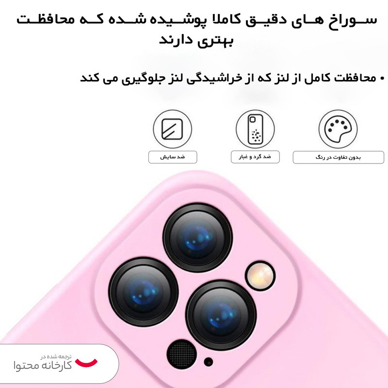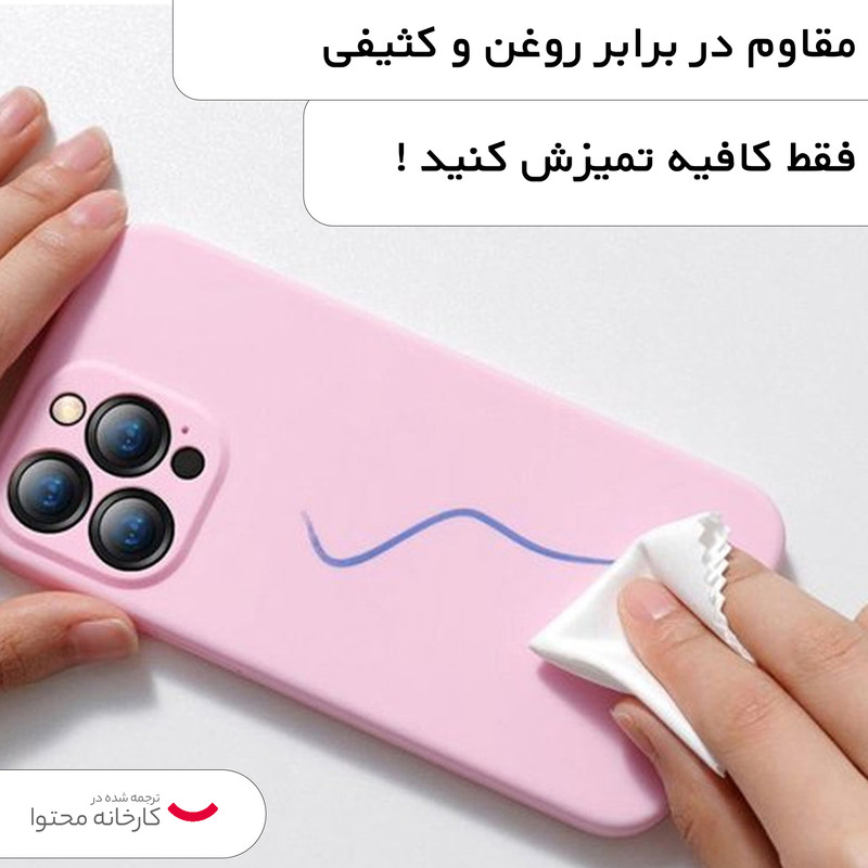 پوشش کامل اطراف لنز و کلیدها | ساختاری از میکروفایبر، PC و سیلیکون مایع | مقاوم در برابر اثرانگشت، چربی و... | مقاوم در برابر ضربات | محافظت کامل از بدنه و پشت گوشی و دوربین