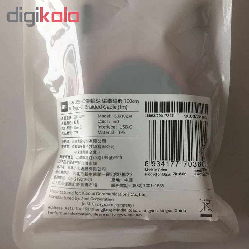 کابل تبدیل USB به USB-C مدل SJX10ZM طول ۱ متر