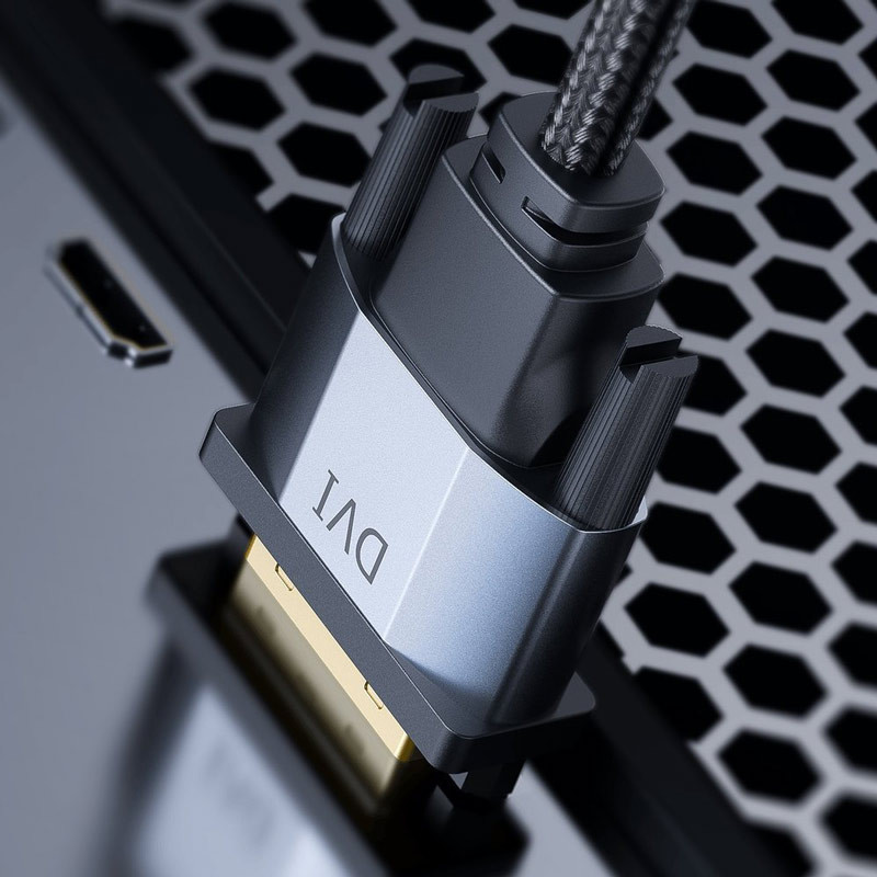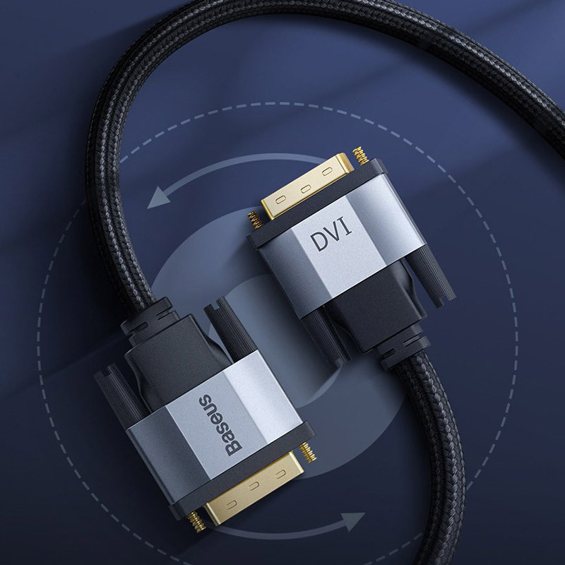 کابل Baseus CAKSX-Q0G Enjoyment 4K HD DVI to DVI bidirectional یک کابل از شرکت بیسوس است که قابلیت انتقال تصویر تا کیفیت و رزولوشن 4K و HD را دارد. سری های این کابل از جنس آلومینیوم تولید شده و کابل آن نیز با روکشی از الیاف در هم تنیده ی پلاستیک مقاوم پوشیده شده است. این کابل قابلیت انتقال تصویر تا کیفیت 4K را داراست ولی باید توجه داشته باشید که هم خروجی و هم ورودی شما باید از این قابلیت پشتیبانی کنند. در غیر اینصورت تصویر با رزولوشن های پایینتر که توسط دستگاه شما پشتیبانی می شود پخش خواهد شد.