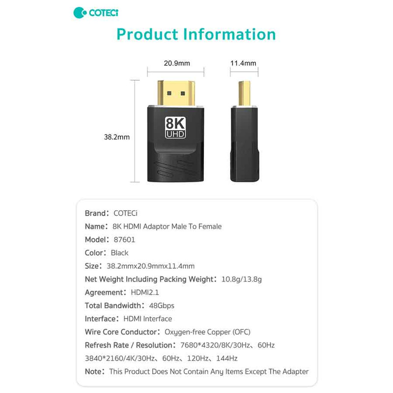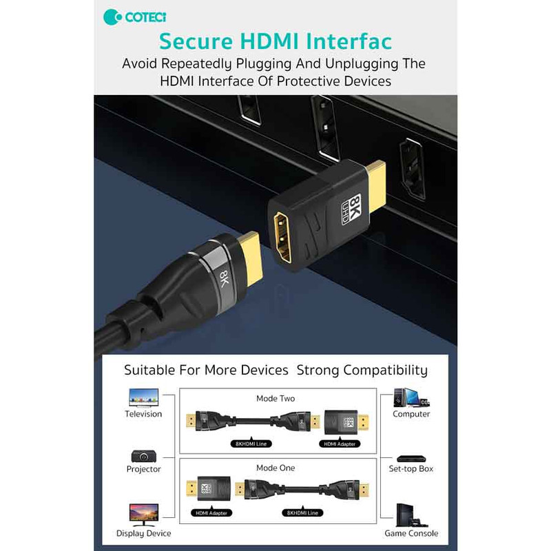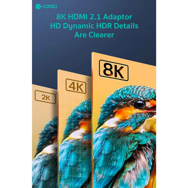 با پشتیبانی از استاندارد HDMI 2.1، این مبدل می تواند تصاویر 8K/60Hz و 4K/144Hz را با کیفیت بالا منتقل کند. این امر آن را برای استفاده با دستگاه هایی مانند تلویزیون های 8K و 4K، کنسول های بازی نسل جدید و کارت های گرافیک پرقدرت ایده آل می کند.