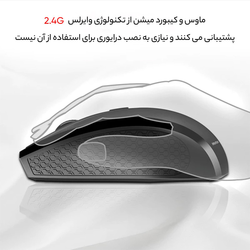 موس و کیبورد Meetion از تکنولوژی وایرلس 2.4G پشتیبانی می کنند و نیازی به نصب درایوری برای استفاده از آن نیست؛ فقط کافی است دانگل را به سیستم متصل کنید تا به صورت خودکار به موس و کیبورد متصل شده و از آن استفاده کنید.