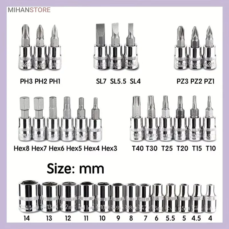 - 13 عدد سری بکس در سایزهای 4، 4.5، 5، 5.5، 6، 7، 8، 9، 10، 11، 12، 13 و 14 میلیمتر