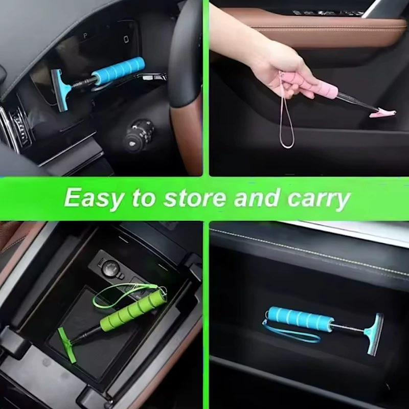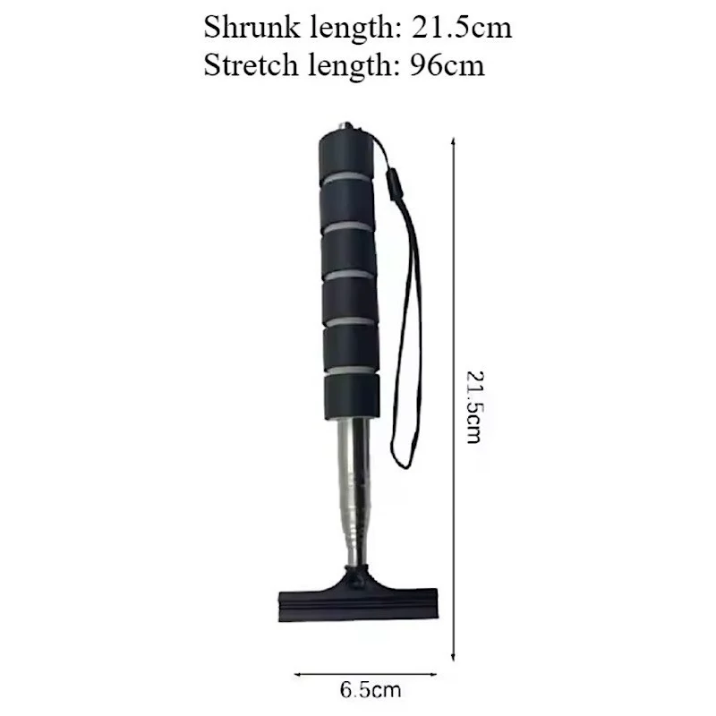 مناسب برای تمیز کردن آینه و افزایش دید در شرایط نامساعد جوی به ویژه بارندگی طراحی نوین و کاربردی ابعاد در حالت بسته 6.5 × 23 و افزایش طول تا 96 سانتی متر قابلیت تنظیم ارتفاع متناسب با نیاز بند آویز تعبیه شده در انتهای دسته تیغه منعطف برای تمیز کردن سطح شیشه و آینه قابلیت تمیز کردن آینه سمت مخالف داخل خودرو بدون نیاز به پیاده و سوار شدن های مکرر سبک و کم حجم مناسب برای انواع خودرو