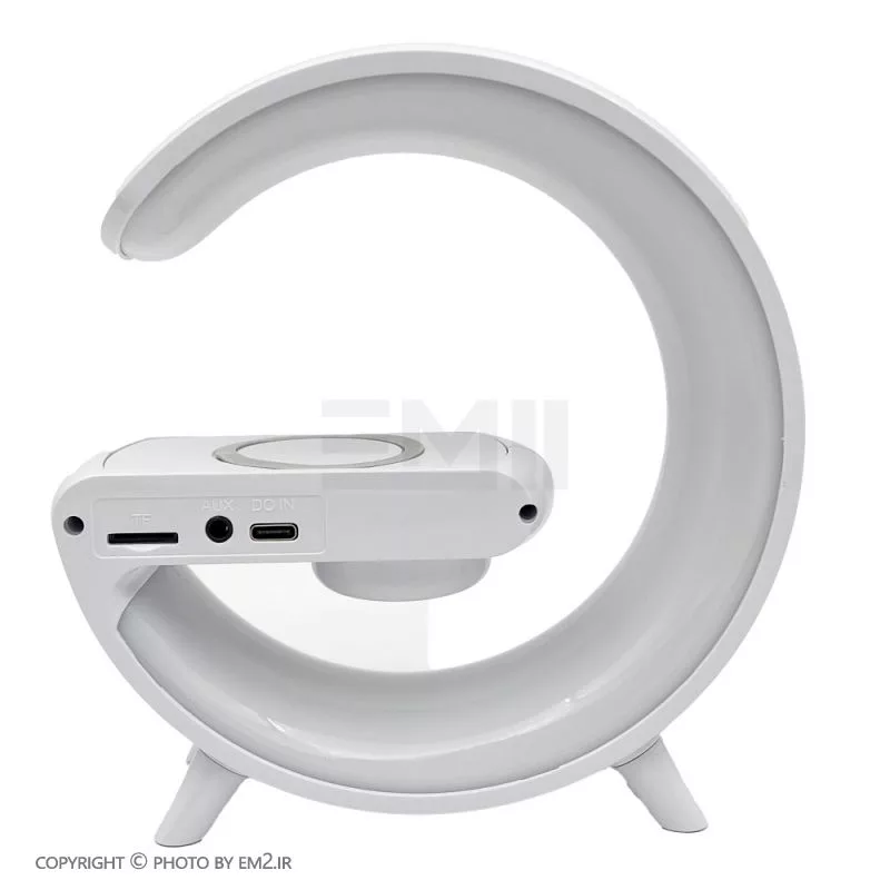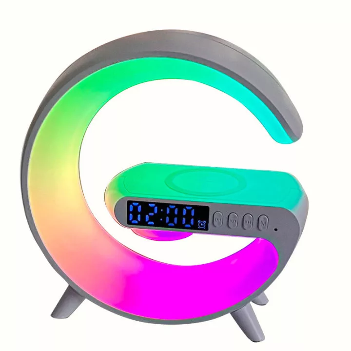 چراغ خواب هوشمند RGB مدل G63 طرح اسپیکر دار ، یک گجت چندکاره است که علاوه بر یک چراغ خواب جذاب با افکت های نوری RGB ، قابلیت نمایش ساعت و تنظیم ساعت بیدار شدن و کوک کردن ساعت و همچنین قابلیت شارژ کردن وایرلس موبایل را دارد . از قابلیت جذاب دیگه این محصول که آن را خاص میکند ، اسپیکر های این چراغ خواب است که میتوانید قبل از خواب موزیک دلخواه خودتون رو از طریق بلوتوث پخش کنید. برای تنظیم ساعت این دستگاه کافیه یکبار به یک تلفن همراه (از طریق بلوتوث) متصل کنید تا ساعت دستگاه تنظیم شود . این دستگاه برای روشن شدن نیاز به آداپتور 20 وات دارد که میتوانید از آداپتور های موبایل این وسیله را شارژ و یا روشن کنید.
