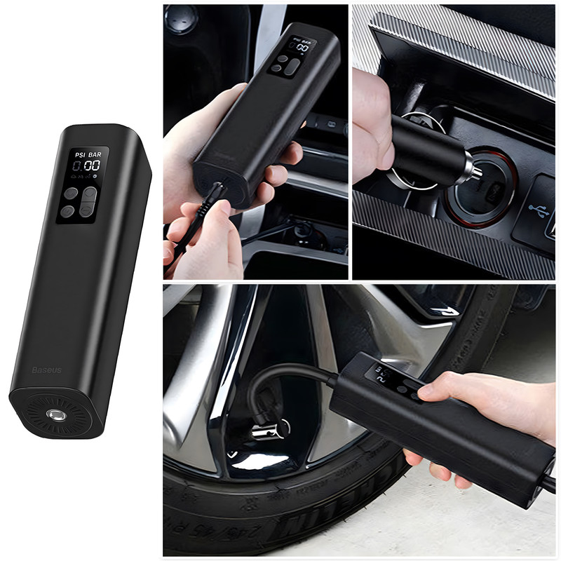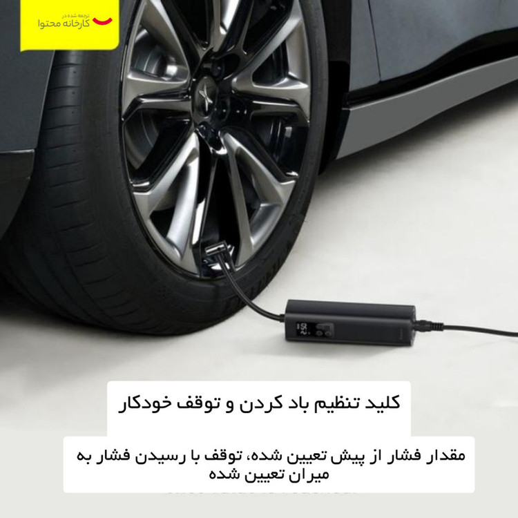 جنس: ABS و پلیکربنات نسوز / طول کابل: 3 متر / دارای چراغ قوه / تنظیم باد خودکار و دستی / امکان کار کرد مداوم به مدت 20 دقیقه | مجهزبه موتور فلزی با آهن رباهای دائمی