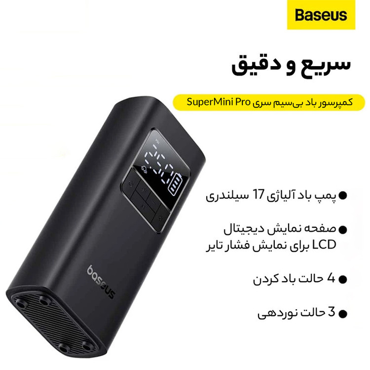 جنس ABS+PC / زمان باد کردن 6-8 دقیقه (لاستیک R175) / موتور تک سیلندر 17 میلیمتری / دارای چراغ LED قابل تنظیم در 3 حالت / صفحه نمایش دیجیتالی