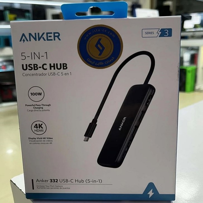 امکانات و قابلیتها: هاب USB-C انکر مدل ۳۳۲ دارای ۵ درگاه خروجی میباشد. 1 درگاه HDMI 4K 2 درگاه USB 3.1 2 درگاه USB-C 3.1