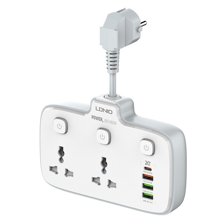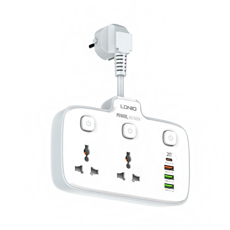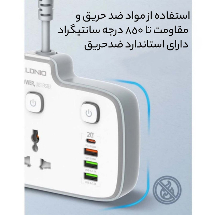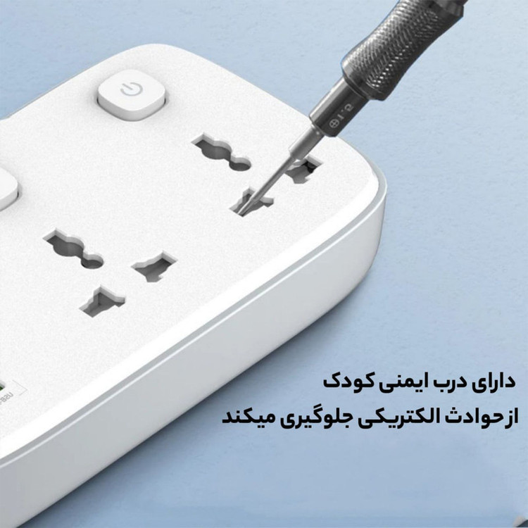 دارای 2 خروجی برق از نوع Universal | حداکثر توان خروجی برق 2500 وات | حداکثر توان خروجی شارژ 20 وات | 1 خروجی Type C و 3 خروجی USB | قابلیت شارژ سریع PD و QC 3.0 | ضد آب و مقاوم در برابر گرمای بالا