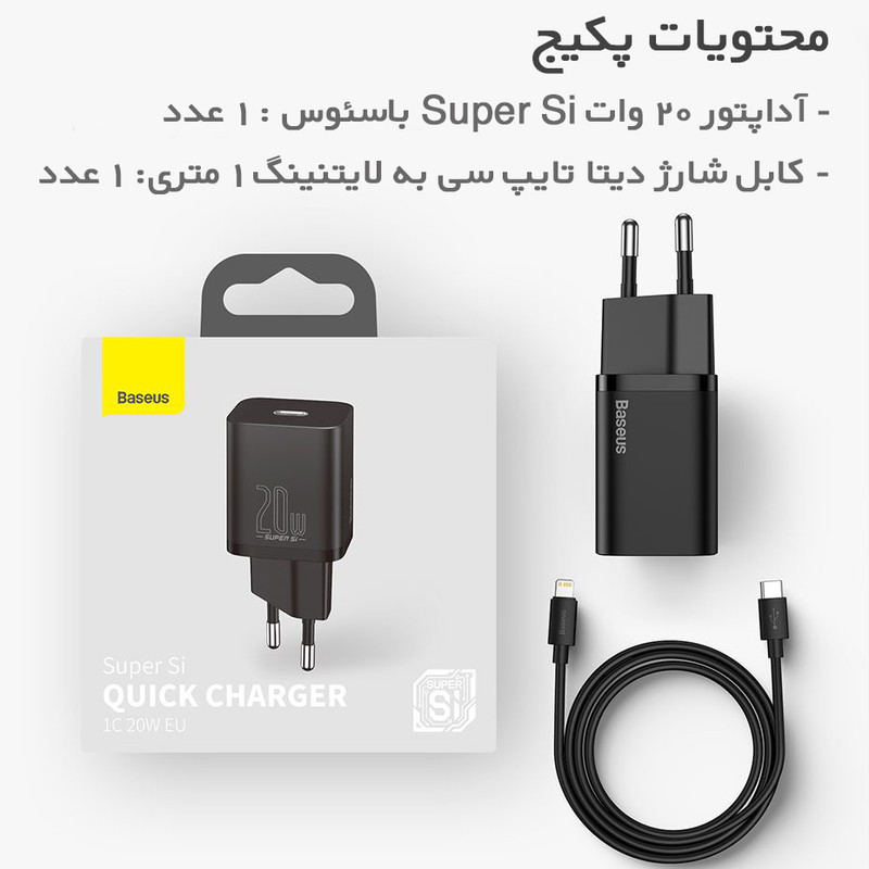 توان خروجی کلی آداپتور فست شارژ بیسوس TZCCSUP-B01 برابر با 20W میباشد که میتواند سری اپل آیفون 12 را با همین توان و سری آیفون 11 و قبل را با توان 18W شارژ کند. این تشخیص چگونگی کاهش توان به واسطه تکنولوژی محافظتی Power-Off بیسوس انجام میشود تا باتری گوشیها به طور خودکار تنها توانی که برایشان قابل تحمل است را دریافت کنند و صدمه نبینند.Super Si در واقع یک متریال جدید بر پایه سیلیکون است که دارای تراکم و رسانایی حرارتی بهتری میباشد و در چیپ این شارژر به کار رفته است. شارژرهای تولید شده با این تکنولوژی ابعاد کوچکتری دارند، سریعترند و در شرایط دمایی بالا مقاومت بیشتری خواهند داشت. همین امر سبب شده تا یک آداپتور 20 وات ساخته شده از فناوری super Si اندازهای برابر با یک آداپتور شارژ 5W داشته باشد.بدنه شارژر فست بیسوس TZCCSUP-B01 از پلاستیک ABS ساخته شده و به راحتی حرارت داخلی را از سطح خارج میکند تا شارژر سریع داغ نشود. ابعاد آن 78×34×28 میلی متر میباشد و وزنی برابر با 49 گرم دارد که به نسبت یک شارژر 20 واتی بسیار سبک است. به همراه این محصول یک کابل شارژ دیتا Baseus Simple Wisdom Data Cable تایپ سی به لایتنینگ به طول 1 متر نیز ارائه میشود. این کابل توان پشتیبانی از توان 20 وات را داشته و میتواند با سرعت 480Mbps به انتقال داده بپردازد.