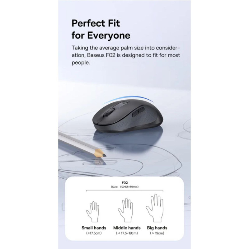 با ماوس بیسیم ارگونومیک Baseus F02 از آزادی حرکت و آزادی از سیمها لذت ببرید. به لطف اتصال بلوتوث و 2.4G، می توانید در عرض چند ثانیه به دستگاه خود متصل شوید و از پاسخگویی فوری در هر کاری لذت ببرید. این ماوس همچنین به طور جهانی با سیستم عامل های مختلف از جمله ویندوز، مک و لینوکس سازگار است.
