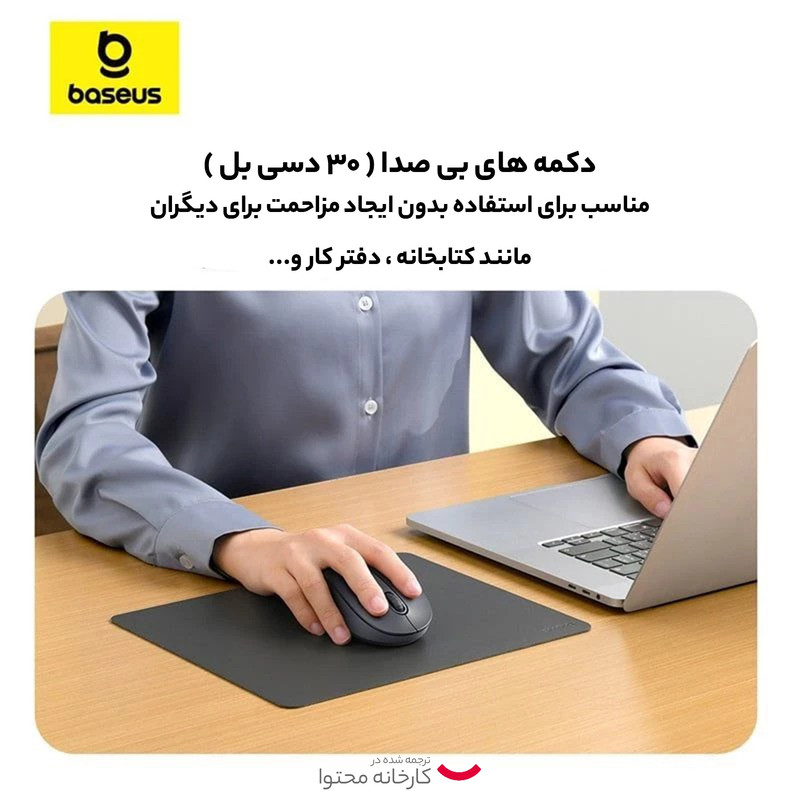 طراحی شیک و زیبای ماوس بی سیم ارگونومیک Baseus F02 جلب توجه می کند و امکان استفاده از آن را در محیط های اداری و خانگی فراهم می کند. و شکل ارگونومیک منحصر به فرد، موقعیت راحت دست را در حین استفاده تضمین می کند و از خستگی و تنش جلوگیری می کند.