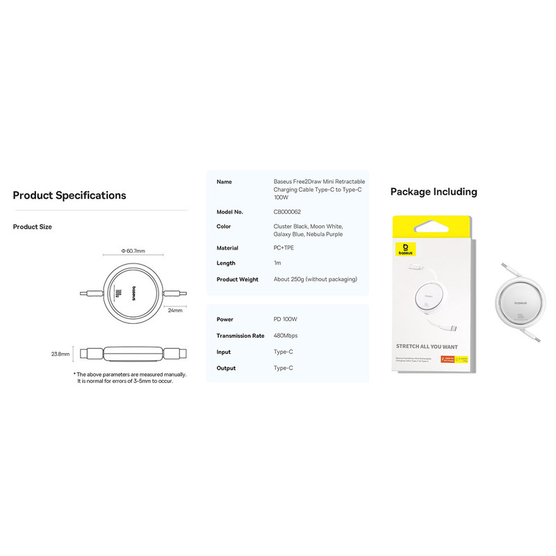• شارژ سریع PD 100 وات • انتقال داده با سرعت 480 مگابیت بر ثانیه • شارژ سریع و ایمن • طراحی فوق العاده نازک (منحصر به فرد و ثبت اختراع شده) • طول کابل قابل تنظیم (0.3M، 0.6M، 0.8M، 1M)