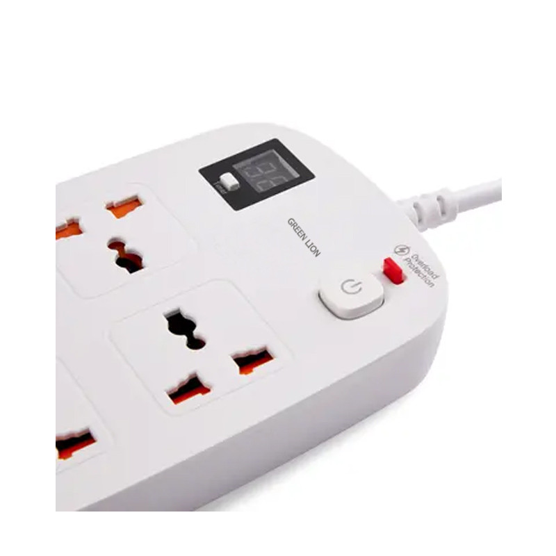 دارای دو پورت USB-A از نوع QC3.0 | دارای دو پورت Type-C از نوع PD | دارای نمایشگر دیجیتال | طول کابل متصل 3 متر | پریزهای برق از نوع Universal و مناسب برای استفاده در هر مکان