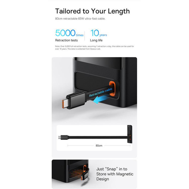 کابل برق 1.5 متری و کابل متصل Type-C با طول 80 سانتیمتر