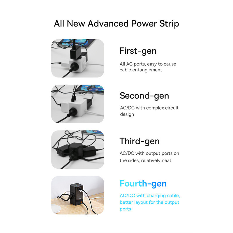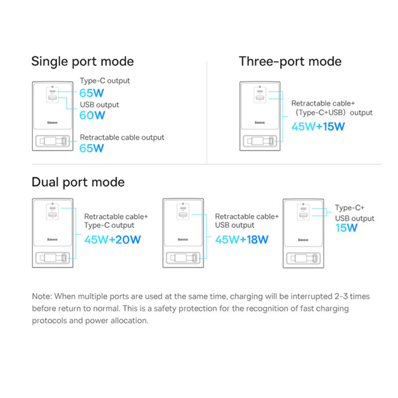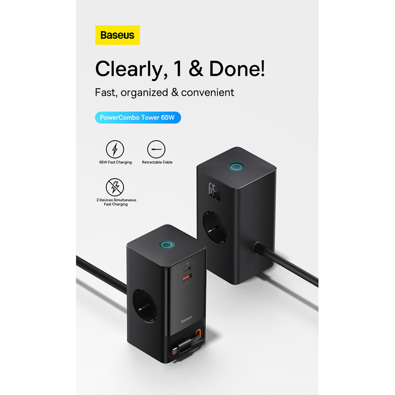 کالای اورجینال بیسوس، واردات انحصاری تیم تکنیک تل | دارای یک کابل Type-C متصل به بدنه برای شارژ | حداکثر توان خروجی شارژ 65 وات | دارای 10 لایه محافظتی | نوع دوشاخه EU / ایرانی | دارای 2 پریز برق + USB-C + USB