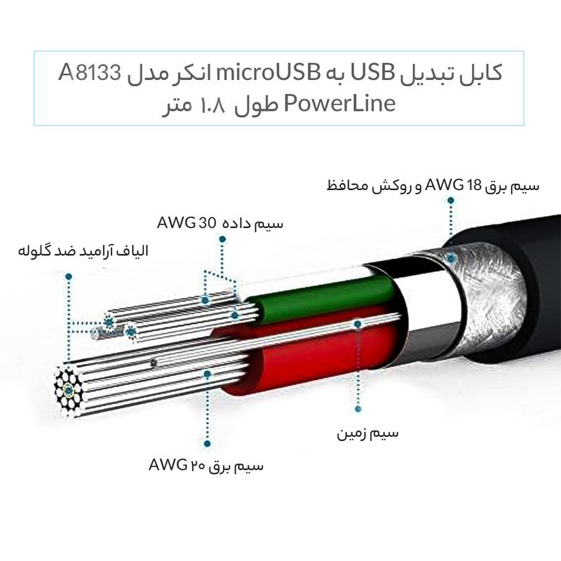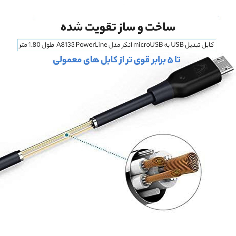 کابل تبدیل USB به microUSB انکر مدل A8133 PowerLine  طول 1.80 متر