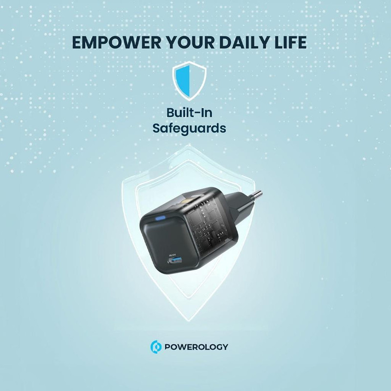شارژ فوق سریع قابلیتی است که در شارژر فوق فشرده 20 واتی PD GaN پاورولوژی گنجانده شده است. با استفاده از فناوری GaNFast می توانید دستگاه های خود را سریعتر از شارژرهای سنتی شارژ کنید. این محصول می تواند ظرف 35 دقیقه دستگاه شما را از 0% تا 60% شارژ کند. GaN یا همام گالیوم نیترید یک یک ماده نیمهرسانا با پهنای باند گسترده و بسیار مستحکم است و علاوه بر کارایی بیشتر در انتقال جریان، دارای تلفات گرما حداقلی است و حداکثر انرژی را به دستگاه متصل منتقل میکند. از آنجایی که انتقال انرژی بسیار کارآمد است، اجزای کمتر برای انتقال جریان کافی است و درنتیجه باعث کوچکتر شدن ابعاد شارژر می گردد. این شارژر هوشمند جمع و جور 20 واتی PD GaN می تواند به طور خودکار قدرت مناسب دستگاه شما را تشخیص دهد و خروجی را بر اساس آن تعیین کند. این می تواند به شما اطمینان دهد که دستگاه شما ایمن ترین سرعت شارژ را دریافت می کند. همچنین دارای محافظ داخلی در برابر گرمای بیش از حد، ولتاژ و شارژ بیش از حد است.